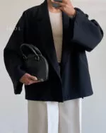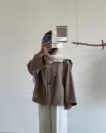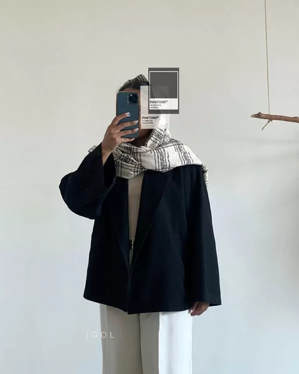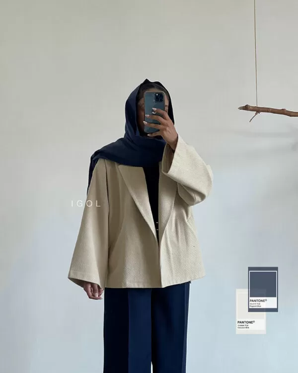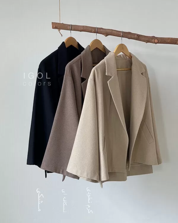 دورسینه کت در حالت بسته بودن اندازه زده شده است و تا ده سانت بیشتر هم سایز می شود .